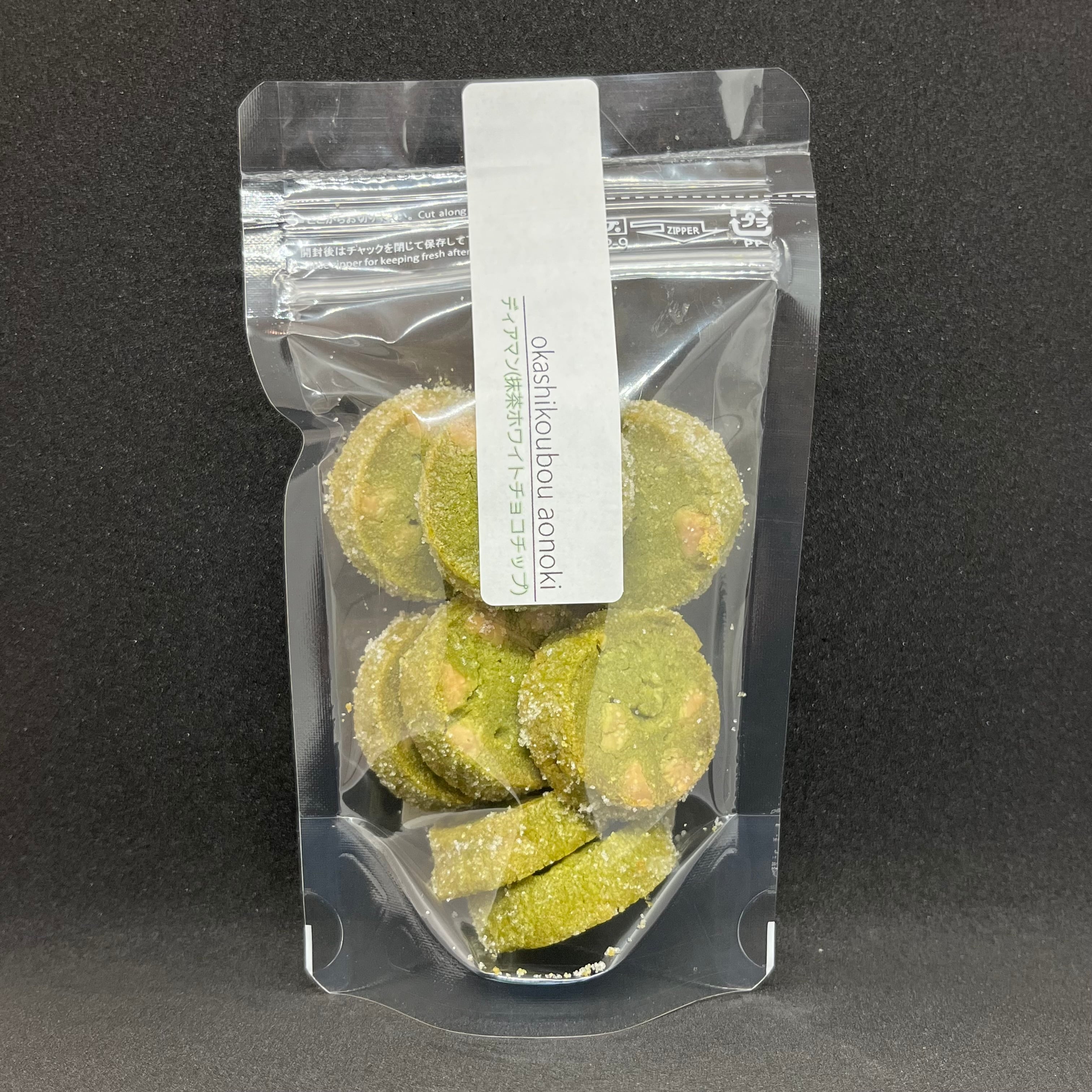 【ディアマン 抹茶ホワイトチョコチップ】小麦粉(国内製造)、バター、グラニュー糖、アーモンドパウダー、コーンスターチ(遺伝子組み換えでない)、卵黄、緑茶植物油脂、乳糖、全粉乳、米澱粉、ココアバター/乳化剤、香料、(一部に小麦、卵、乳、大豆を含む)
