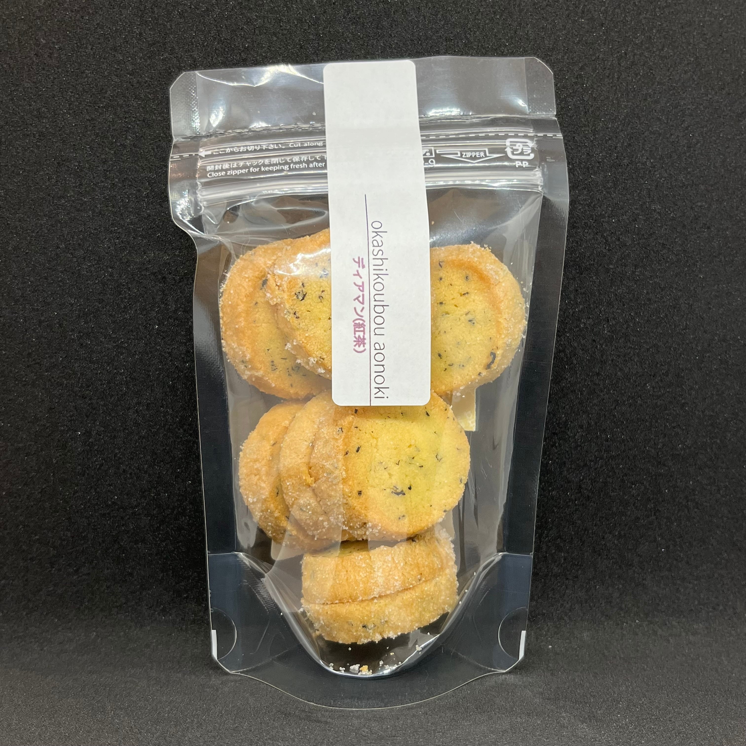 【ディアマン 紅茶】小麦粉(国内製造)、バター、グラニュー糖、アーモンドパウダー、コーンスターチ(遺伝子組み換えでない)、卵黄、紅茶/香料、(一部に小麦、卵、乳を含む)