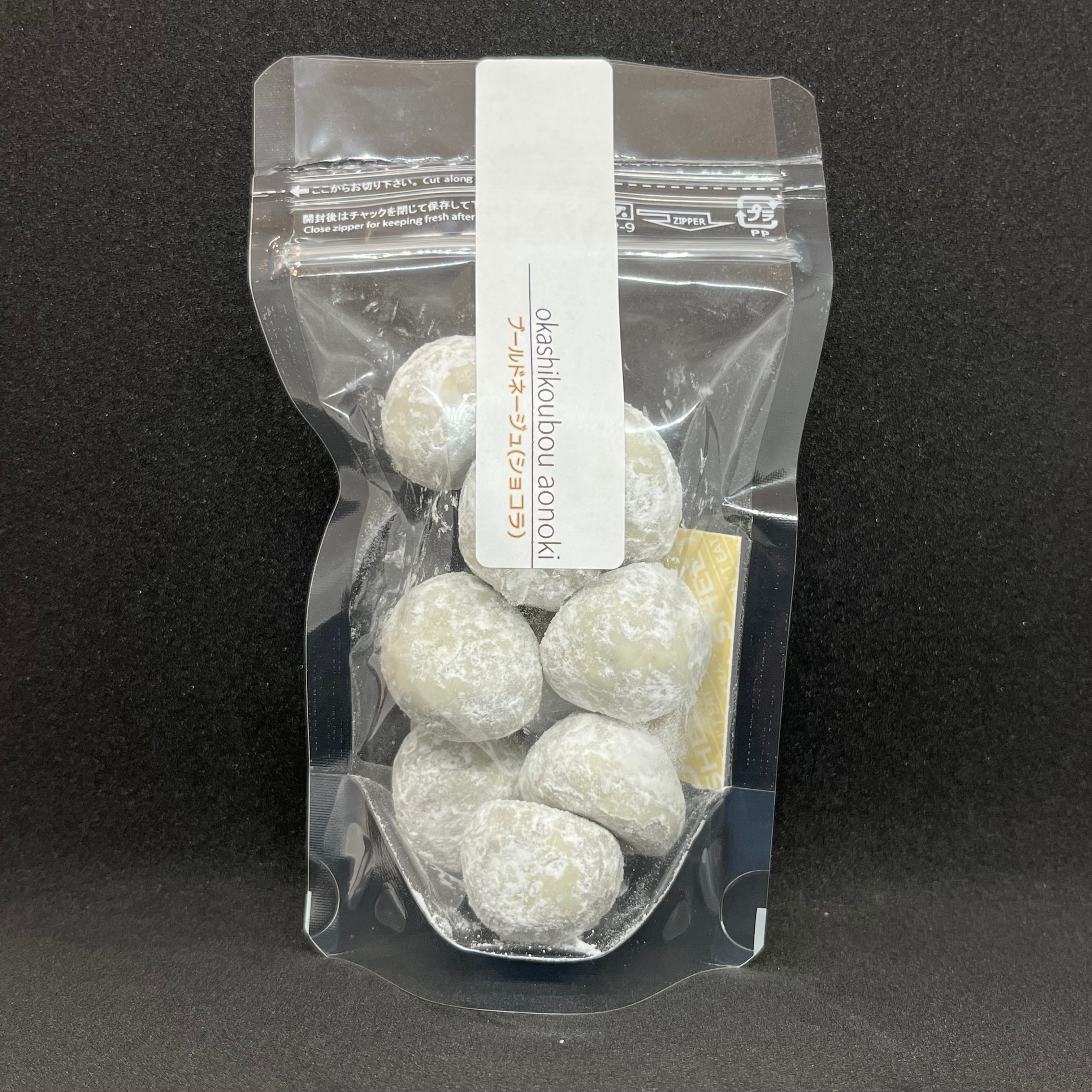 【ブールドネージュ ショコラ】小麦粉(国内製造)、バター、粉糖、ココア、コーンスターチ(遺伝子組み換えでない)(一部に小麦、乳を含む)