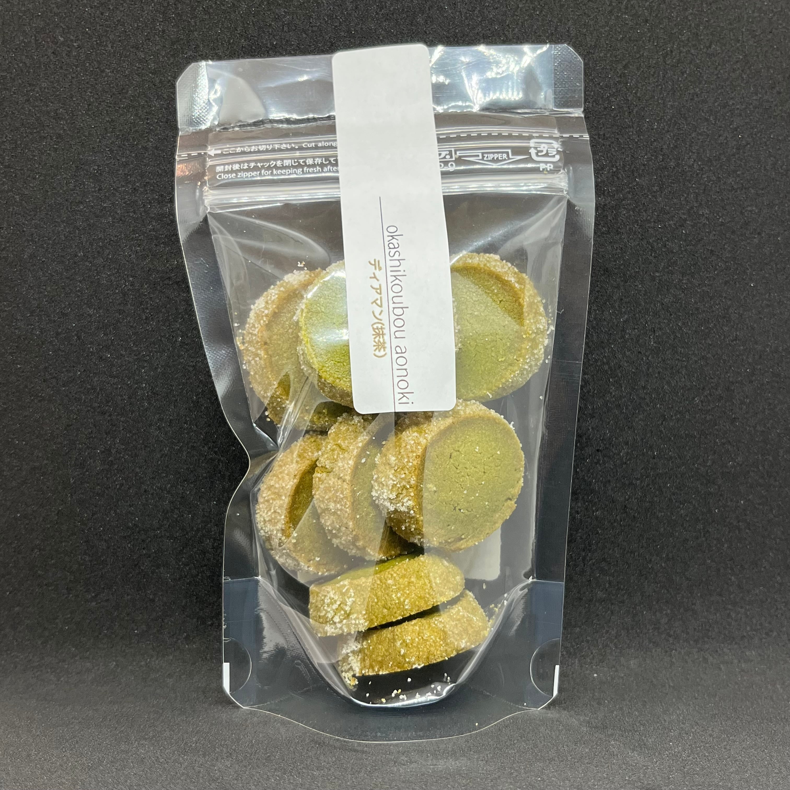 【ディアマン 抹茶】小麦粉(国内製造)、バター、グラニュー糖、アーモンドパウダー、コーンスターチ(遺伝子組み換えでない)、卵黄、緑茶/香料、(一部に小麦、卵、乳を含む