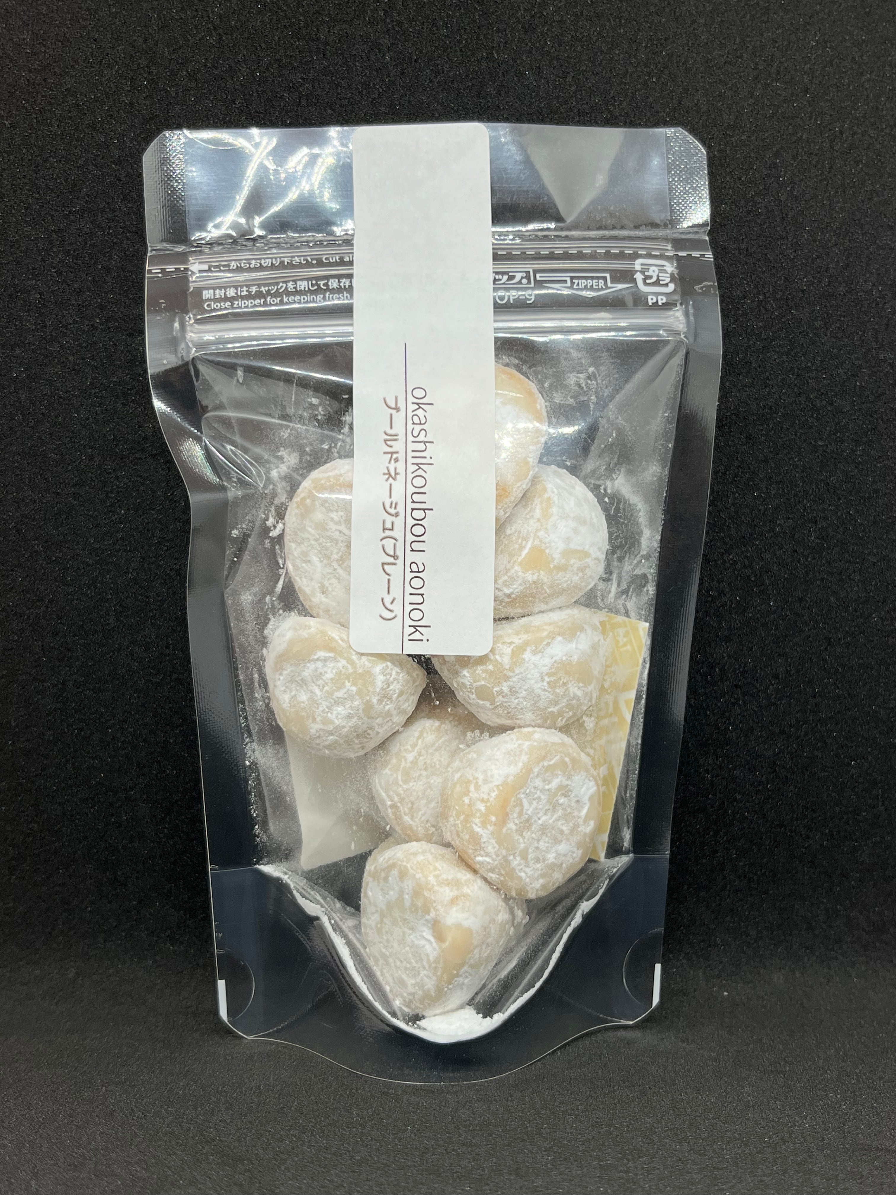 【ブールドネージュ プレーン】小麦粉(国内製造)、バター、粉糖、コーンスターチ(遺伝子組み換えでない)、バニラビーンズ(一部に小麦、乳を含む)