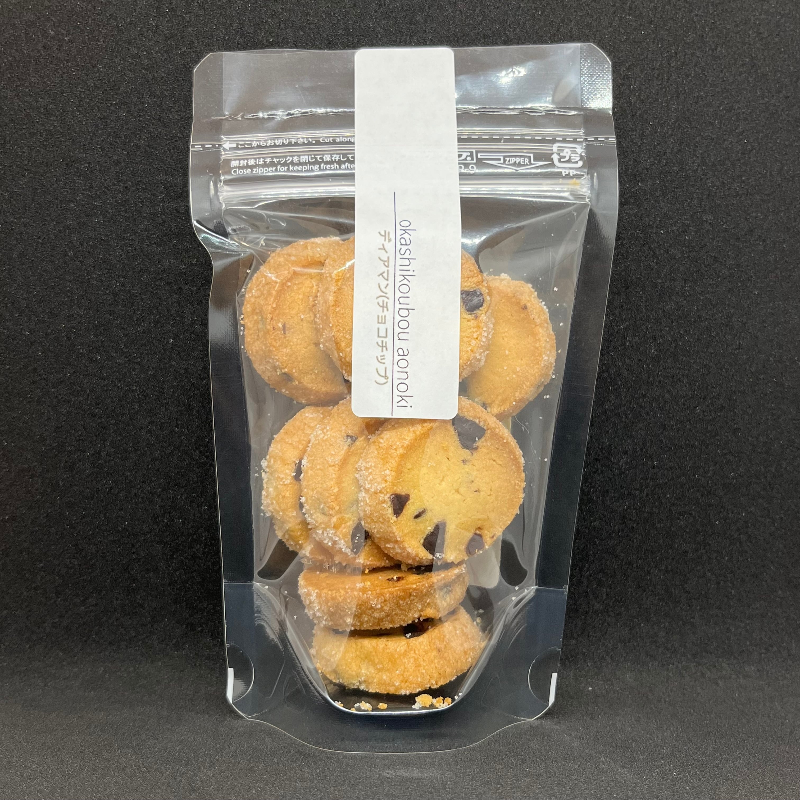 【ディアマン チョコチップ】小麦粉(国内製造)、バター、グラニュー糖、アーモンドパウダー、コーンスターチ(遺伝子組み換えでない)、卵黄、植物油脂、ココアパウダー、カカオマス/乳化剤、香料、(一部に小麦、卵、乳、大豆を含む)